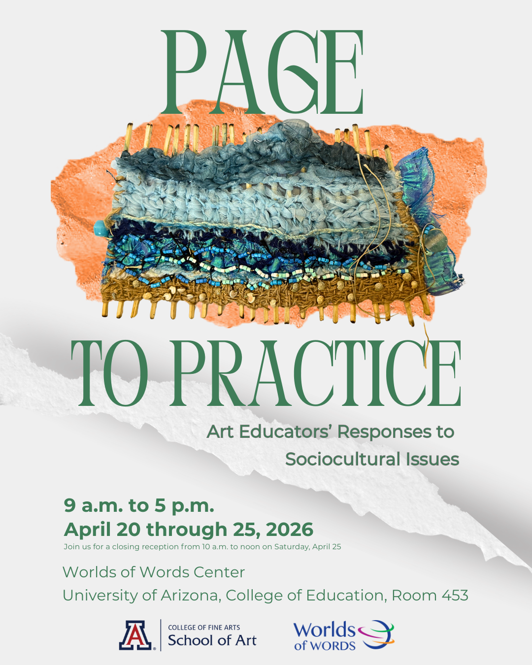 Selected works will also be on view in person at Worlds of Words, University of Arizona College of Education, Room 453, from Monday, April 20, 2026, through Friday, April 24, 2026, 9:00 AM–5:00 PM.